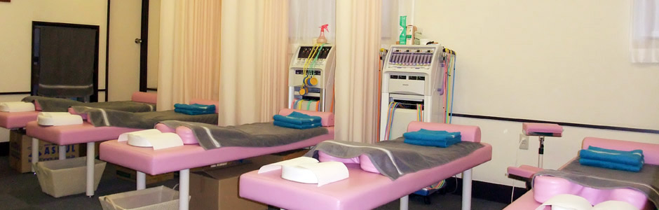 当院の整体施術は、深部の凝りや痛みを取り除きます。さらに歪んだ骨格を矯正し、各関節の可動域を改善する事で、より治療の効果を高めます。 首・肩のコリ、頭痛、五十肩、腕・指先の痺れ、背部痛、腰痛、坐骨神経痛、股関節の痛み、全身疲労、骨盤矯正などご相談ください。